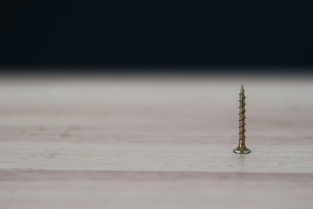 There weren’t any other screws like it – not down by his feet, not tacked down the middle,… just this one, lone screw jutting out of the wood. It wasn’t even straight. Which joker put this thing together?